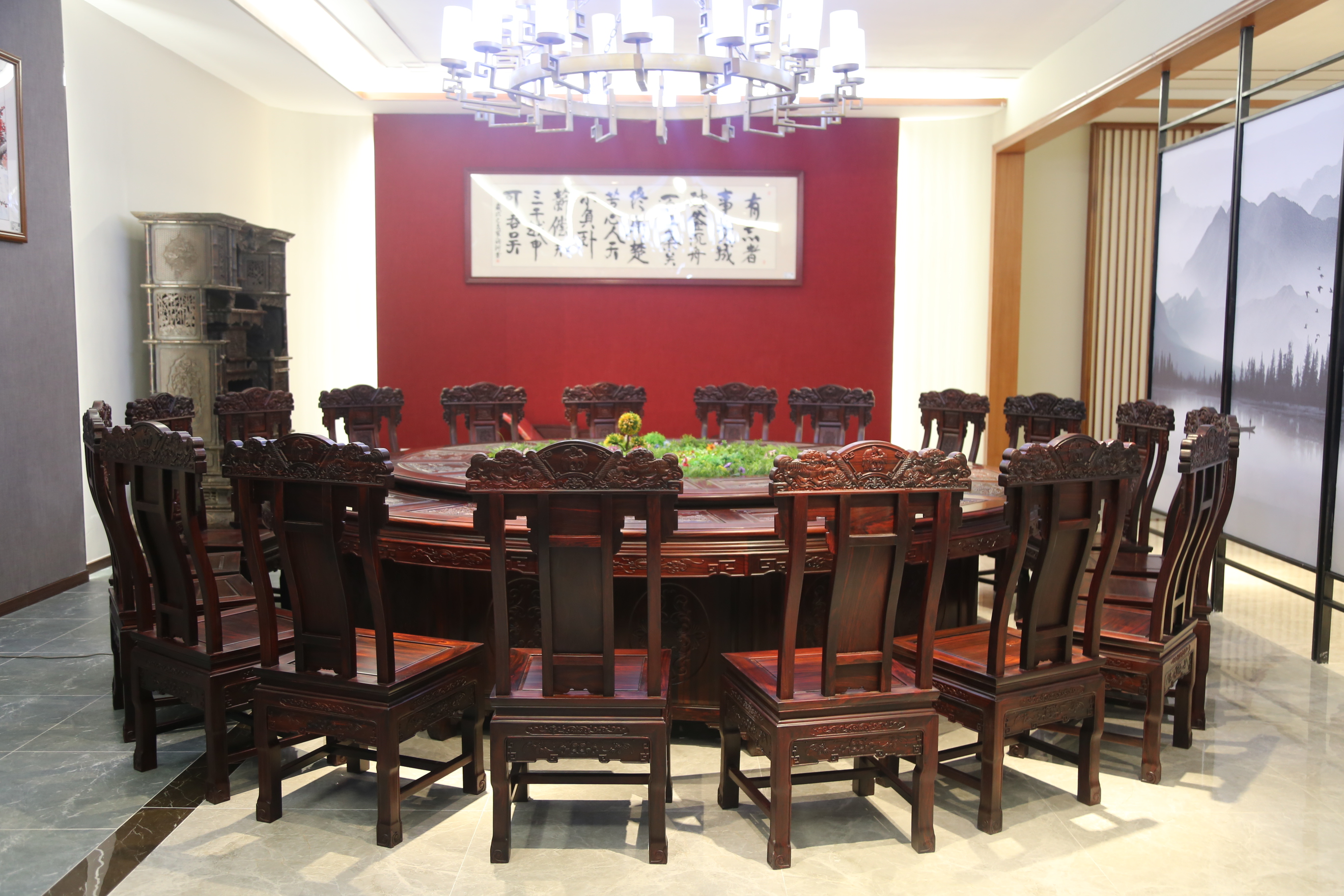 3.2米雕花電動圓餐臺配20張金玉滿堂椅