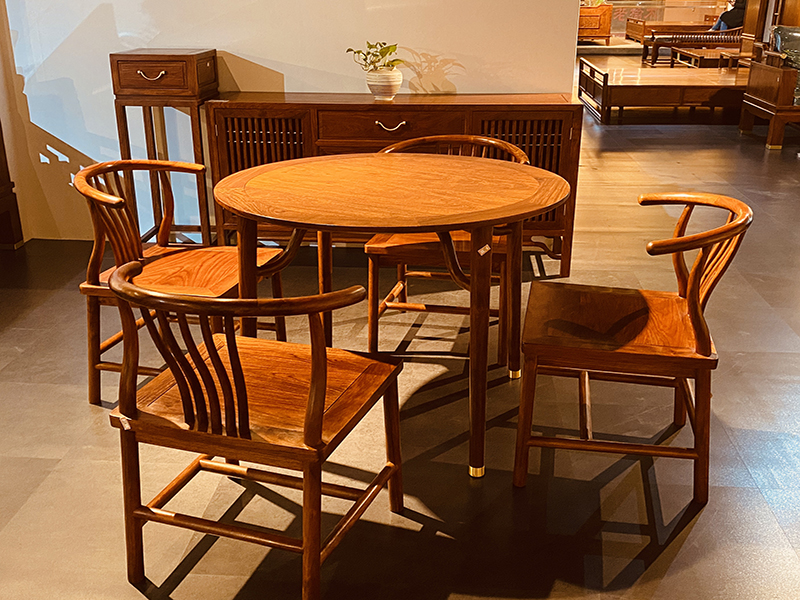 休閑圓臺(tái)配4韻梨茶椅